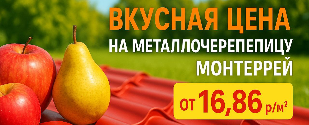 Все лето ВКУСНАЯ СКИДКА на металлочерепицу монтеррей по 16,86 р/м2. Данная цена действует на металлочерепицу из стали 0,4 мм с покрытием полиэстер глянец.