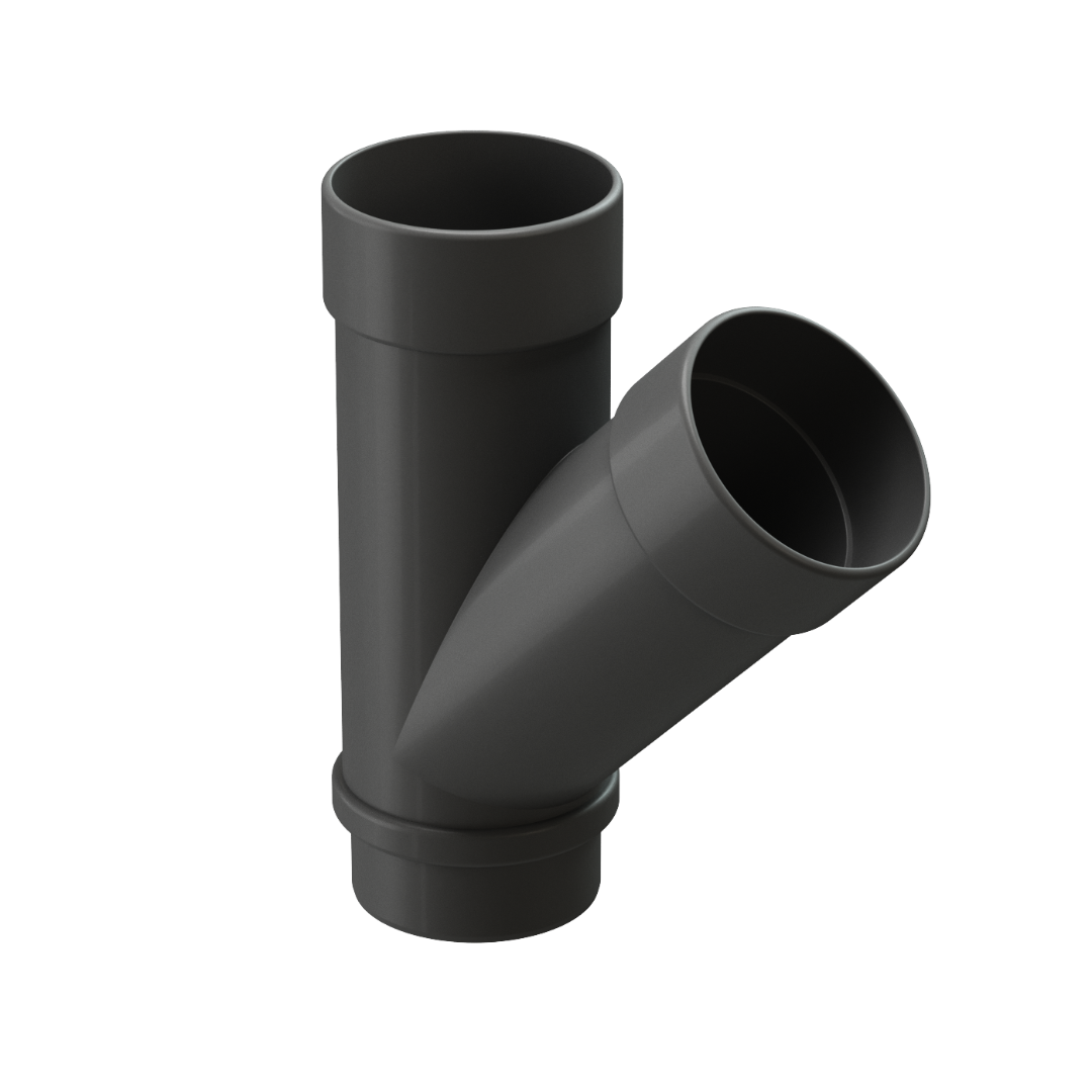 Тройник под углом 45˚ — это уникальный элемент водосточной системы серии Docke LUX, который предназначен для соединения труб системы Döcke LUX под углом 45˚.